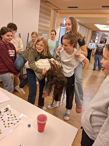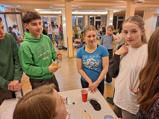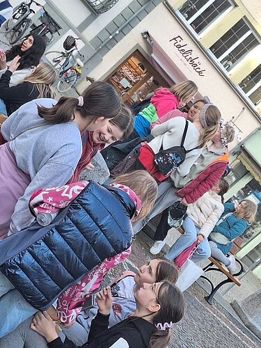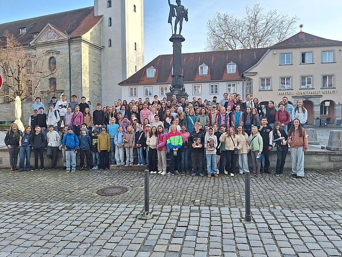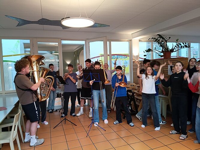 Mit insgesamt 130 Mitgliedern der Bigband, des Unterstufenchors und des großen Schulchors machten wir uns am Mittwoch nach der 6. Stunde auf den Weg, um die Jugendherberge in Lindau mit Musik zu erfüllen. Nachdem alle Schülerinnen und Schüler pünktlich von der Schule zum Bahnhof Aulendorf gebracht worden waren (vielen Dank an die zahlreichen Eltern-Taxis!), fuhren wir bei strahlendem Sonnenschein mit dem Zug gen Süden. In der Jugendherberge angekommen, wurden Zimmer verteilt, das Haus erkundet und nach dem Abendessen ging es erstmal um ein intensives Kennenlernen zwischen Groß und Klein. Die Schülermentorinnen Anna und Martha aus Klasse 10 haben einen tollen Spieleabend vorbereitet und durchgeführt, bei dem in gemischten Gruppen knifflige oder artistische Aufgaben bewältigt werden mussten. Danke an euch zwei! Der Donnerstag war erfüllt von intensiver Probenarbeit in Chor und Bigband, doch es blieb auch Zeit für einen gemeinsamen Ausflug auf die Lindauer Insel, wo die Schülerinnen und Schüler in Kleingruppen Eis essen, einkaufen und die Altstadt erkunden konnten. Und schon war der Freitagvormittag da, an dem wir nach dem Zimmerräumen und Saubermachen nochmal eine Probeneinheit eingeschoben haben. Schließlich gibt es viel zu tun, denn in diesem Jubiläums-Schuljahr stehen noch zahlreiche musikalische Ereignisse an, wie das Musical oder das Sommerkonzert. Zufrieden, müde und vielleicht etwas wehmütig („Können wir nächstes Mal nicht länger bleiben?“) haben wir uns nach dem Mittagessen auf den Weg zum Bahnhof gemacht und sind wohlbehalten und pünktlich in Aulendorf angekommen.