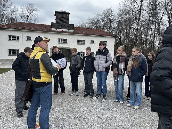 Am Montag besuchte die 9. Jahrgangsstufe unserer Schule die KZ-Gedenkstätte Dachau. Ziel war es, Geschichte am authentischen Ort zu begreifen – mit Fakten, Kontext und vor allem mit Raum für persönliche Reflexion. Die Stimmen der Schülerinnen und Schüler zeigen, wie intensiv dieser Lernort wirkt. Bereits der erste Schritt durch das Tor hin zum Appellplatz prägte sich ein. „Das, was mich am meisten getroffen hat, war, als wir durch das Tor auf den großen Versammlungsplatz traten. Ich wusste zwar, dass er groß war, aber so groß konnte ich es mir nicht vorstellen.“ Die schiere Dimension des Ortes machte vieles begreifbar: „Man konnte sich auch alles viel besser vorstellen oder einen viel besseren Eindruck gewinnen als nur durch Bücher oder Bilder zu sehen.“ Besonders eindringlich waren für viele die Berichte über Haftbedingungen und Gewalt. „Besonders erschreckend fand ich, welchen Bedingungen die ‚Insassen‘ damals ausgesetzt waren“, heißt es in einer Rückmeldung. Eine andere Schülerin schildert: „Uns wurde von verschiedenen Methoden erzählt, wie man die Leute gedemütigt und verletzt hat, manches hat mich sehr schockiert.“ Der Blick in die Enge der Unterkünfte wirkte nachhaltig: „Die Menschenmenge (2000 Personen), die in eine Baracke passen mussten, war unvorstellbar für mich.“ Auch medizinische Verbrechen und Strafen ließen niemanden kalt: „Erschreckend waren für mich die medizinischen Experimente sowie die Baracke X mit der kleinen Tür … Die enormen Strafen, wenn man nur einen Knopf in der Hosentasche hatte, waren brutal.“ Gleichzeitig wurde sichtbar, dass es trotz Terror Formen von Mut gab: „Ich fand es erstaunlich und sehr mutig, wie Menschen, die dort festgehalten wurden, trotzdem Widerstand geleistet haben.“ Ein anderer Gedanke knüpft daran an: „Auch in dieser Zeit gab es Hoffnung … ein kleiner Trost, dass die Menschen nicht komplett aufgegeben haben.“ Viele betonen, wie der Ort das Lernen vertieft: „An so einem Ort zu sein, vermittelt einen anderen Eindruck als die Schulbücher.“ Eine Schülerin fasst es so: „Im Unterricht bekommt man zwar mit, dass es sehr schlimm war, aber wie schlimm und grauenvoll es war, ist einem in Dachau noch mehr bewusst geworden.“ Die Atmosphäre traf ins Mark: „Der Ort hatte genau die passende Stimmung zum Thema und es war ziemlich unheimlich.“ Empathie und Haltung schwingen in den Kommentaren mit – auch in Ablehnung von Respektlosigkeit: „Auch dass so viele Sachen dort als Souvenir gestohlen wurden, fand ich schlimm.“ Zugleich bleibt der Bildungsauftrag: „Ich würde jedem einen Besuch der KZ-Gedenkstätte Dachau ans Herz legen, um zu sehen, wie es früher war.“ Und als Lehre für heute: „Man konnte etwas lernen und in der Zukunft darauf achten, dass so etwas nicht passiert.“