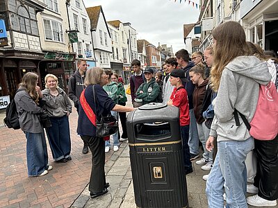 On our last day we met at 7.30 am at the bus stop. We took the bus to Canterbury and arrived two hours later. At first we got some free time: some of us went shopping, others ate something or just explored the city. At 12 o’ clock we met at the Cathedral entrance for the city tour where we learned some interesting facts about the city. For example we learned that many buildings had flintstones on the facade because they didn’t have any other building material. We also learned that there were four gates in Canterbury and that they were built because the people were afraid that the Romans would attack them. Once again we had some free time to do something in small groups. At 5.30 pm we went to the Evensong into the Cathedral. A boys’ choir sang and fortunately the archbishop of Canterbury was there too. He is the one who had an important part in the coronation of King Charles lll. About half an hour later the church was over and we walked to the parking lot. As we waited for the bus driver, we bought some food for the journey home and went to the toilet. At 9 pm we finally started our way back home. The day in Canterbury was a beautiful ending of our trip to England.