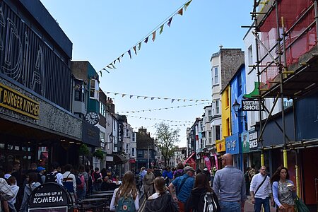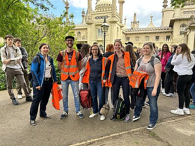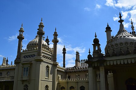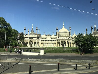 On Sunday at 9:30 am we arrived in Brighton. First we made a little city tour, where we could see some cool spots and after that we had lots of time to eat something. Later we met in the park, where we saw a parade of people supporting gay rights and playing instruments. After watching the parade, we visited the Royal Pavilion, built for George IV who lived a long time ago.
