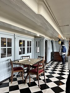 After the tour in the HMS Victory we had a short lunch break. Afterwards we could look around the museum in small groups where we could see lots of replica ships. Also you could hear stories about the people who lived at that time. These stories were very impressive. It was easy to imagine their life. Some information was conveyed in a playful way.