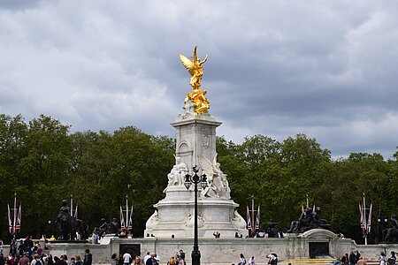 After discovering the Tower of London, we took the underground to Buckingham Palace, which is the monarch's official residence in London. It is also used for official state occasions. Furthermore we saw the Victoria Memorial which is dedicated to the British Queen Victoria. Then we made our way to Big Ben and the Palace of Westminster. On the way we passed Westminster Abbey, which is the church where the monarchs of Great Britain are crowned. Arriving at Big Ben and the Palace of Westminster, we briefly stopped to take photos even though there was a lot of traffic on the road. Not only did we have a view of Big Ben but also of the London Eye. Jazz was played which made the atmosphere even more breathtaking. This was one of those moments when you really felt like you had arrived in London. After that we walked to Trafalgar Square where we stopped next to Nelson's Column.