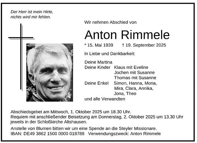 Wir trauern um unseren ehemaligen Mathematik- und Sportlehrer Anton Rimmele.
