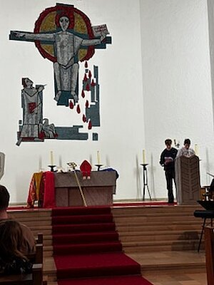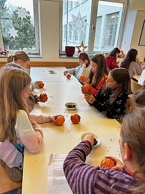 Am Donnerstag, den 04.12, war es ein ganz besonderer Nachmittag für unsere Fünftklässler! Es gab eine wunderschöne Nikolausfeier, die das Tagesheim mit den Paten der Fünfer aus Klasse 10 veranstaltet hat. Es begann besinnlich in unserer Kirche mit einer Andacht - eine gute Gelegenheit, in der oft hektischen Vorweihnachtszeit innezuhalten und über die Bedeutung des Teilens und der Nächstenliebe nachzudenken. Unser Unterstufenchor hat die Andacht musikalisch umrahmt. Im Anschluss wurde im Speisesaal eifrig gebastelt.