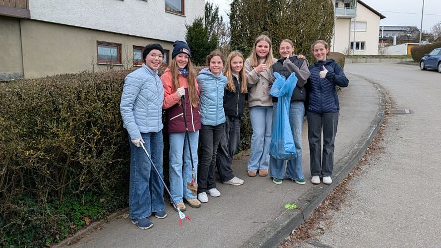 Egal ob achtlos weggeworfene Verpackungen oder versteckter Unrat im Gebüsch – vor der 7c war kein Schnipsel sicher. Es ist schön zu sehen, dass sich unsere Schülerinnen und Schüler für eine saubere Umwelt und unsere Stadt Aulendorf einsetzen.