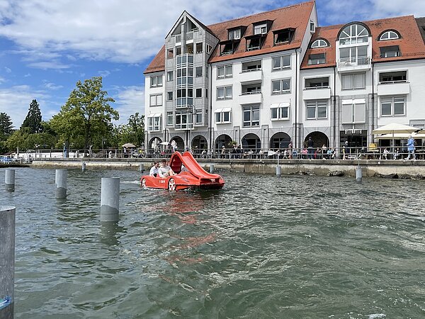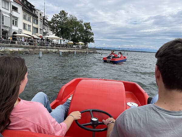 Für alle SMVler, die sich angemeldet hatten, ging es letzten Freitag gemeinsam mit den SMV Lehrern Herr Müller und Frau Linz mit dem Zug nach Friedrichshafen. Nach einer kleinen Stärkung machten wir uns auf zum Tretbootfahren, was aufgrund des Windes eine eher wacklige, aber sehr spaßige Angelegenheit war. Anschließend gab es für alle ein leckeres Eis an der Uferpromenade und wir erklommen noch den Friedrichshafener Aussichtsturm mit bestem Blick auf den Bodensee.