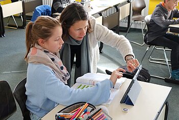 Die Begleitung bei den Hausaufgaben übernehmen die Pädagoginnen und Pädagogen im Ganztagesbereich, um gezielt Hilfestellung zu geben. Zusätzlich gibt es Unterrichtsassistenz in den Klassen 5 und 6, die den Lernprozess individuell unterstützt.